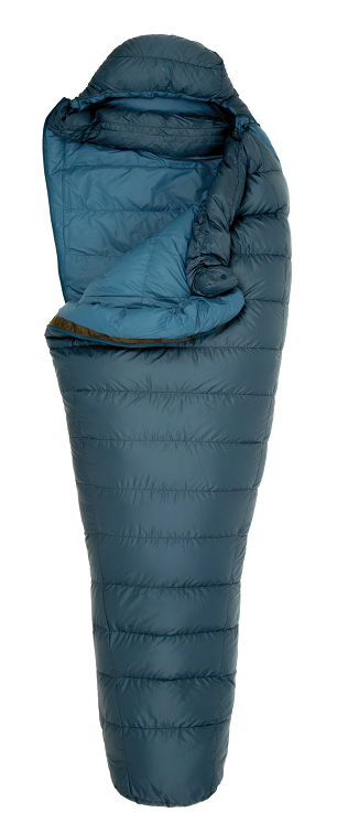 Die 3D-Fussbox mit 11 individuell gefüllten Daunenkammern sorgt für warme Füsse. Ein prall gefüllter, verstellbarer Wärmekragen hält die Wärme im Schlafsack. Die Komfort-Kapuze engt durch einen weiten Schnitt nicht ein und lässt sich bei Bedarf zusammenziehen.